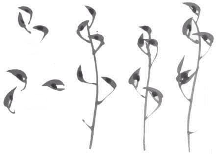 - Hojas (3-5 trazos): primero la hoja central más alta, luego las laterales en apertura natural.